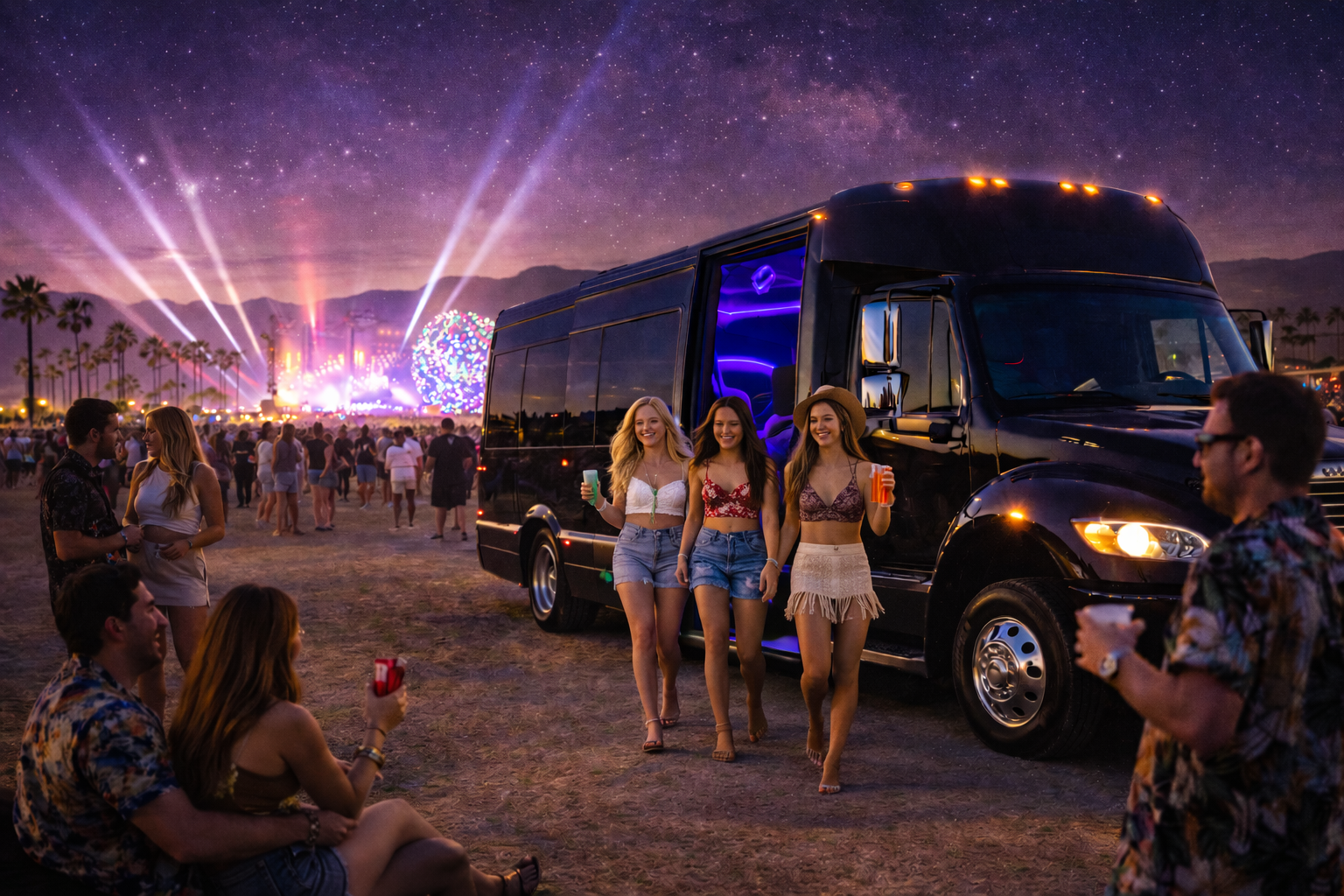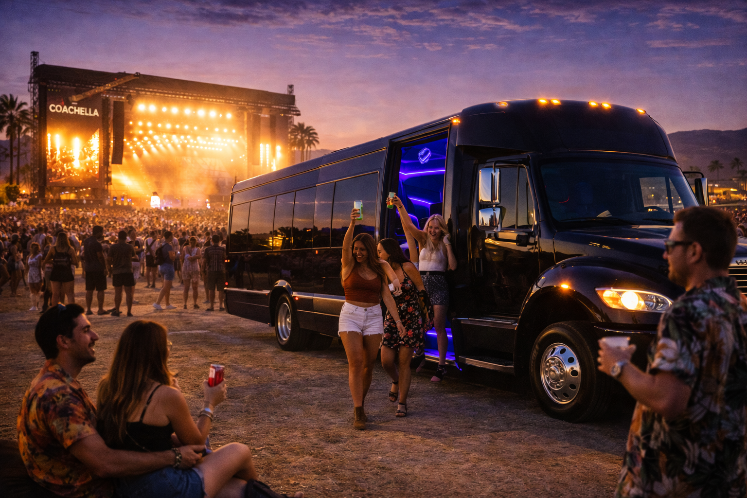 Enjoy the Ultimate Stagecoach experience on one of our fully loaded party buses from Los Angeles, Palm Springs, Orange County or the Inland Empire!